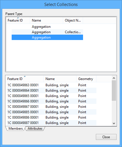 Parent Type | Contains the following information about the collection: • Feature ID: The feature object ID • Name: Collection object type • Object Name: • Attribute Status: Under Construction, Not Verified, Verified or Rejected. |