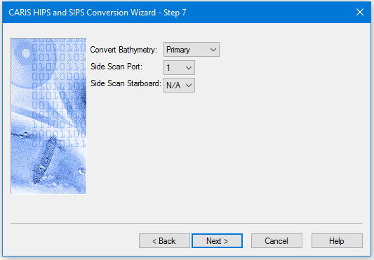 3. Use the Side scan Starboard drop list to select the number of the channel which contains the side scan data. If you select N/A for a channel, no side scan data will be converted for that channel.