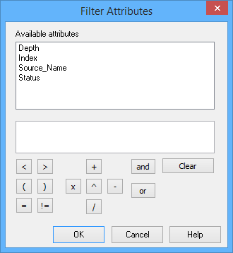 An equation is used to tell the application which attributes to include or exclude. The equation will be displayed in the field below the list of Available Attributes. The attributes must match the equation exactly in order to be filtered.