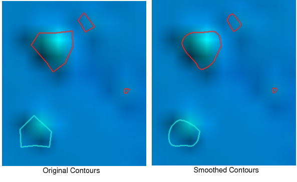 Smooth out and filter contour lines with tightly curved or angular line segments.