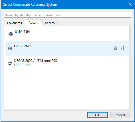 Recent | Recently used coordinate reference systems. |