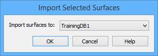 The Import Selected Objects command imports area features from a feature layer into a database. The features will be added to the database as surfac objects without bathymetry. Bathymetry can be added to the surfaces at a later time. See Replace Bathymetry for more information.