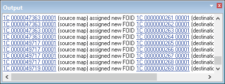 Features with geometries that border or extend beyond the extents of the product area are assigned new feature object IDs when imported. These are listed in the Output window.