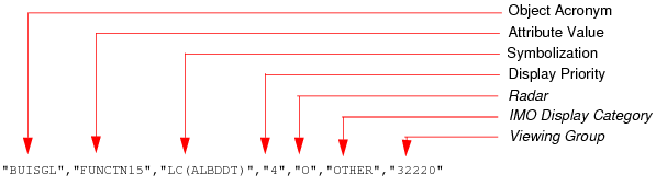 For example, if the dataset contains an ACHARE (Anchorage area) feature with a Category of Anchorage (CATACH) attribute with a value of 2, the third entry for the ACHARE feature acronym, CATACH2, is used.
