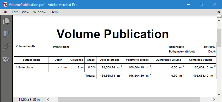 Volume computation results can be exported to a PDF using the New Publication command, creating a volume results report.