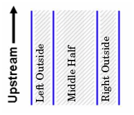 Up to twenty partitions can be created in each reach and each partition is named according to the number of partitions created. For example, if the division results in three partitions, they would be named: “Middle Half”, “Left Outside”, and “Right Outside”.