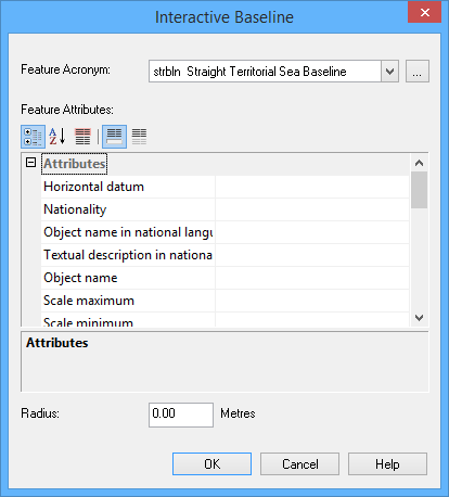 Digitize a baseline interactively. A circle is attached to the mouse pointer. The circle represents a wagon wheel whose centre travels on the limit corresponding to its radius. This lets you interactively digitize the baseline points contributing to a given maritime limit using a nautical chart as backdrop. If you attempt to add a point beyond the specified radius, the circle will disappear.