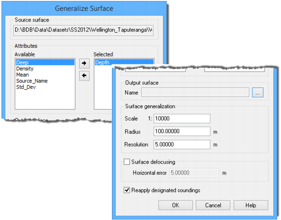 Create a product surface by generalizing an existing BASE Surface. Product surfaces are typically created before you create layers of new vector data (for example, contours and soundings), to be used to create cartographic products.