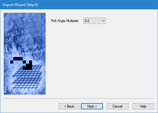 Roll Angle Multiplier | A numeric multiplier used to scale roll angle values. FAU files use either a multiplier of 0.2 or 0.1, as appropriate. After a multiplier has been applied, roll angle values are in units of degrees. The default value is 0.2. |