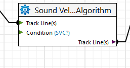 Condition port | A condition port is one that will allow the process model file to run if a specific condition is met. If met, the processing will continue. See also Exists tool | For example, you can set a condition in the Sound Velocity to prompt you to apply SVC. When the process model file is run, the Run dialog box will display an SVC field with a check box so that SVC can be included in that run of the process model file. |