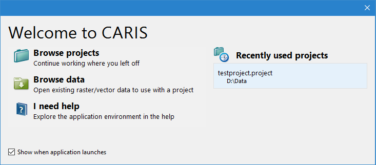 Once data has been opened in the application and saved to a project, the Welcome screen will also provide a list of recently used projects.