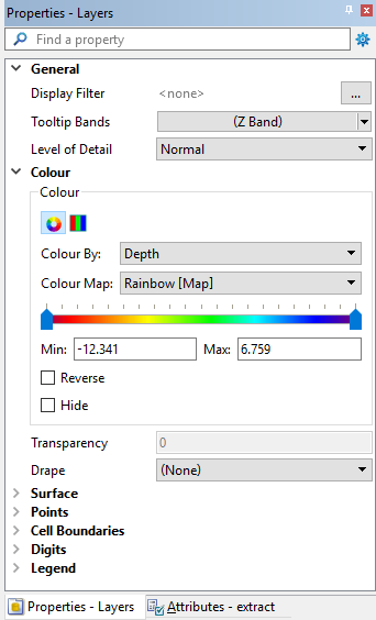 When you select a layer in the Layers window, its properties are displayed in the Properties window. Although all properties are displayed, only those relevant to the 3D View will be enabled. Adjusting these properties changes the 3D view.