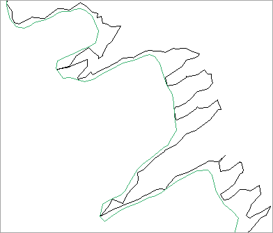 Smooth existing line and area features using a safe-side direction-biased method. Smoothing reduces the number of vertices in a feature, improving the efficiency of processing these features.