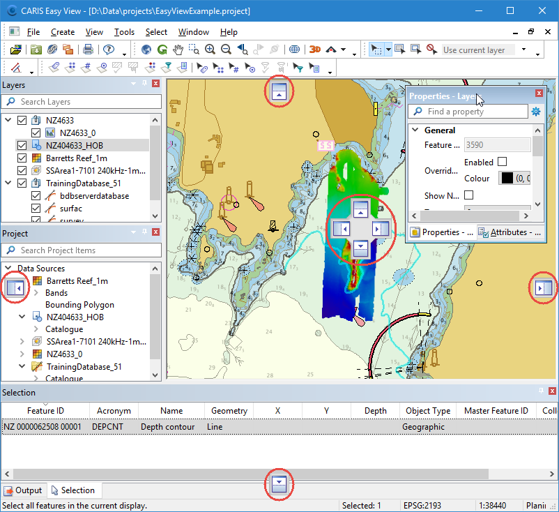 The Project window lists all open data sources, with their features, bands or attribute items displayed below each data source name. The Project window can typically be thought of as the catalogue of the source.