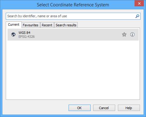 CRS information can be viewed in the Select Coordinate Reference System dialog box.
