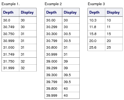 Range limits are defined by threshold attributes. Each range is defined using shallowest sounding or maximum drying height within the range. The order is from the deepest sounding to the highest drying height.