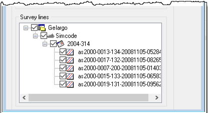 The Survey lines section displays the currently open data in a read-only data tree.