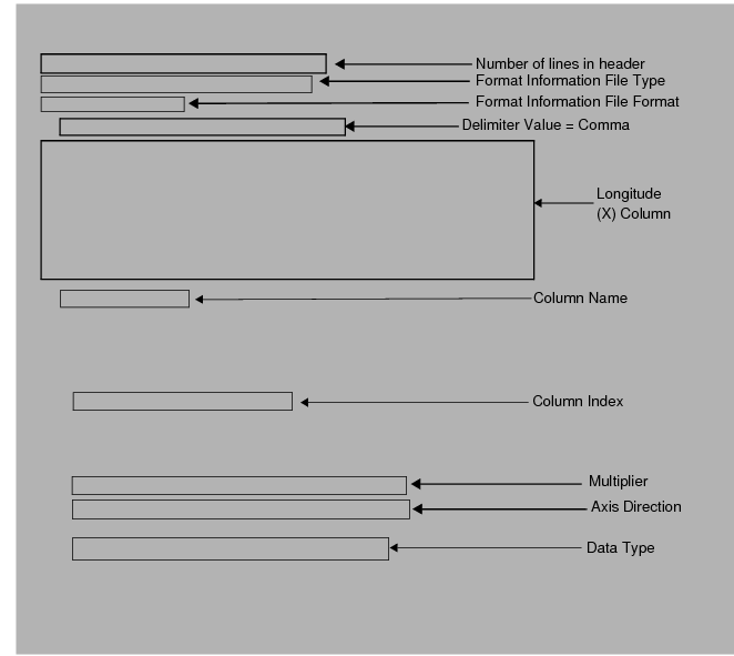 Delimited: A delimited format information file is used if the source data file uses a delimiter character to separate the attribute columns. With this method, the delimiter character identifies where attribute values start and stop.