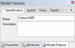 The name of the new surface is displayed in the Identification tab of the Model Feature window.
