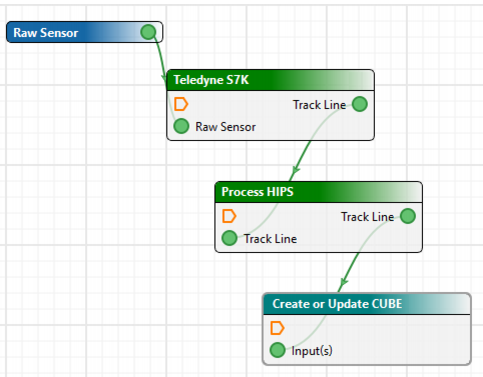 The inserted model is displayed with a teal-coloured title bar. In the example below, a Process Model for Creating or Updating a Surface has been inserted into the main Process Model, which is clearly identified by its teal colour.