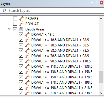 A portrayal can be defined to control the display of the data in each of the layers. This allows data values to be quickly identified in the view based on the colour and pattern applied to the objects.