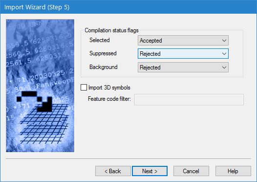Import 3D symbols | Enable this option to filter symbols during import if the source data contains multiple feature codes for symbols, but only specific codes are required. The Feature code filter field will be enabled to specify the symbols to be included in the import. |
