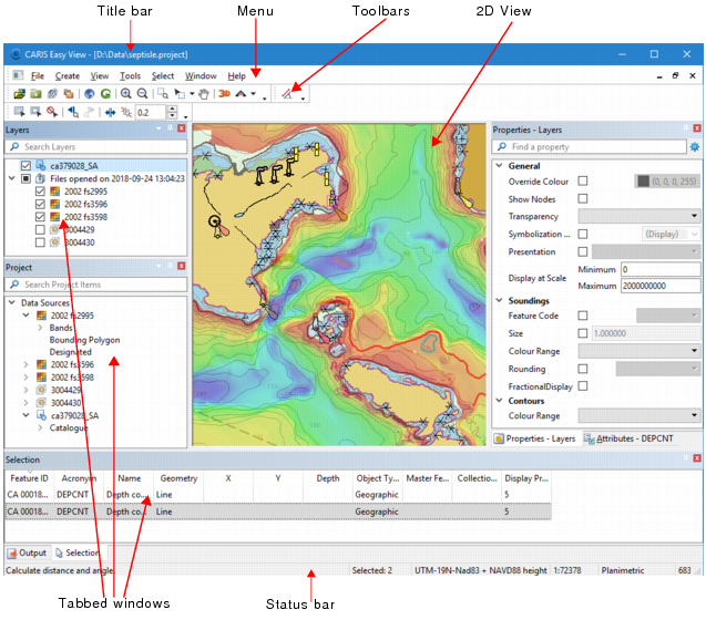 The Display window contains the open map or chart. You can have one 3D display window and multiple 2D display windows open at the same time, if desired.