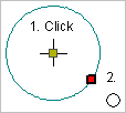 2. Click at the centre point (1) of the circle.