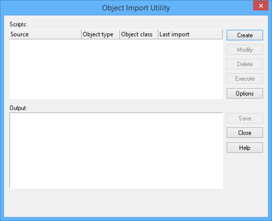 The Object Import Utility is used to create batch scripts which import data into a layer. The data can be imported with or without conversion using rule files.