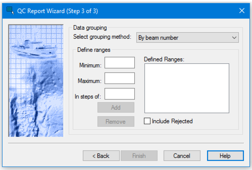The QC Report - Wizard Step 3 dialog box is used to define how soundings are grouped in the QC Report.