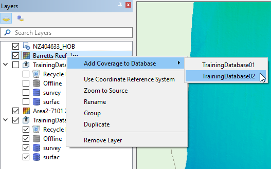 Pop-up | coverage > Add Coverage to Database (Layers window) |