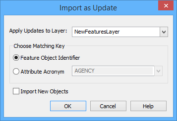 Choose Matching Key | Features are matched using either the feature object ID or a unique identifier that is carried as an attribute. Select from: • Feature Object Identifier • Attribute Acronym If you select Attribute Acronym, you must also select the acronym from the list. |