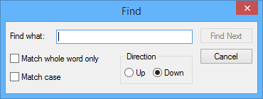 The Find command uses the following dialog box: