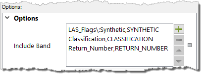 The Include Band option can be used to map the attribute bands of the coverage to relevant attributes in the LAS output file. If this option is not used, only the Depth and Status bands will be exported to the LAS file.
