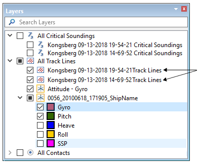 The data from multiple lines can be edited in Attitude Editor. When multiple lines are selected this is indicated in the Layers window.