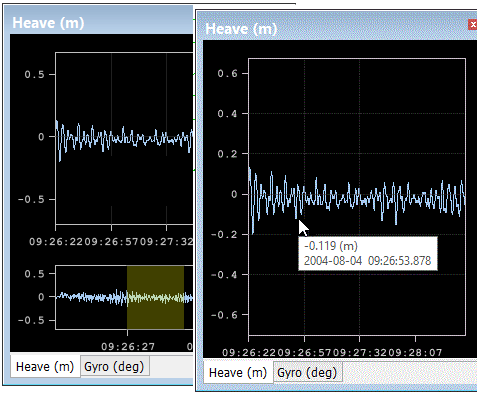 By default, data for Gyro, Heave, Pitch and Roll sensors are displayed.