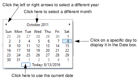 1. Change the date by clicking the calendar button in the Date field to open an interactive calendar.