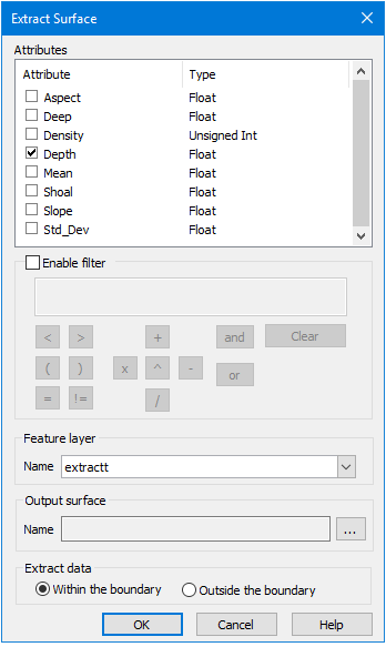 1. Select the attributes to include in the extracted surface.