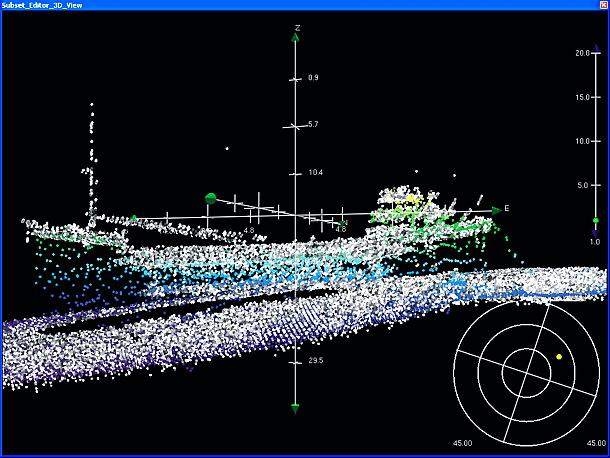 In Subset Editor, WCI data is loaded as a temporary 3D point cloud. Data can be filtered by intensity as well as by a minimum slant range at nadir. WCI data in Subset Editor can also be added to the Additional Bathymetry layer and processed in the standard bathymetry workflow.