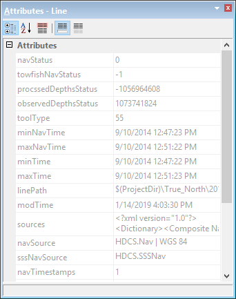 The Attributes window displays attribute information for a single feature superselected in the Display window. If the Feature Editing module is enabled, the values in this window can be changed when the Edit Feature command is enabled.