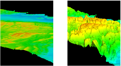 Set the vertical exaggeration of the depth values. This provides a more detailed view of the features. This tool is provided in the 3D View toolbar, which is located in the top-right corner of the view when turned on. The toolbar can be turned on or off using the Toolbar option in the 3D options of the Display category in Tools > Options.