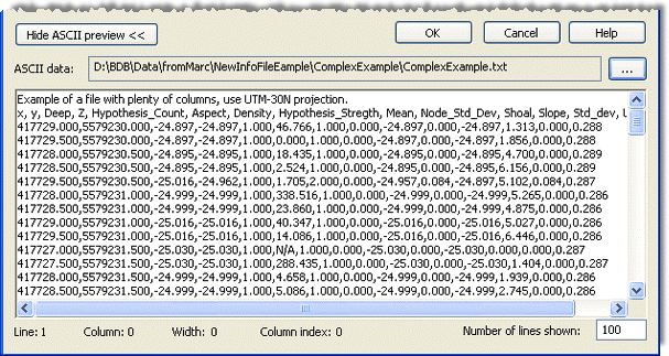 Because the format information file must match the contents of the ASCII file, it is recommended that you have the source data displayed in the preview when defining properties.