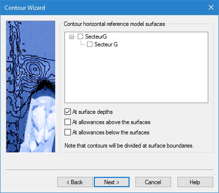 CARIS HIPS and SIPS : Engineering Analysis : Commands : Contour by Reference Model : Contour Wizard: Reference Model Surfaces