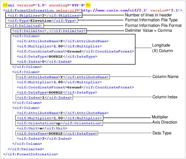 The following is an example of an elevation format information file in the delimited format: