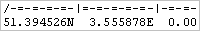 In the example above, the first attribute column would have a start value of 0 with a width value of 11 because there are 11 characters in the X (Longitude) value. The second column (Y or Latitude) would start with the next consecutive number, making the start value 12. It has a width value of 11, taking up characters 12 to 23 in the array of numbers. The start value of the third column (elevation) would then be 24 and the width value would be 5.