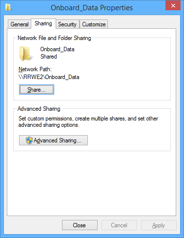 If it does not already exist, you may need to create the directory to be shared, for example, D:\Onboard_Data.