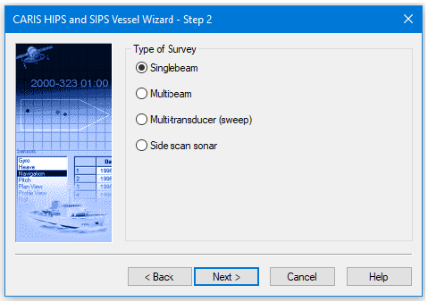 The Step 2 dialog box prompts you to enter the sonar type used in the survey.
