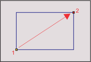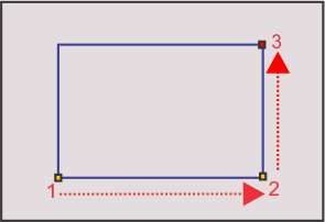 Digitize a rectangle by inserting three points. A rectangle is interpolated from these points. The first and second points form the bottom edge of the panel.