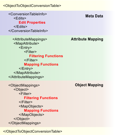 The <ObjectToObjectConversionTable> tag is the root tag for all other elements in the file.