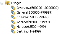 Usages must be set up in a hierarchy. Typically, this hierarchy is determined by scale ranges. In a few cases, levels may overlap.